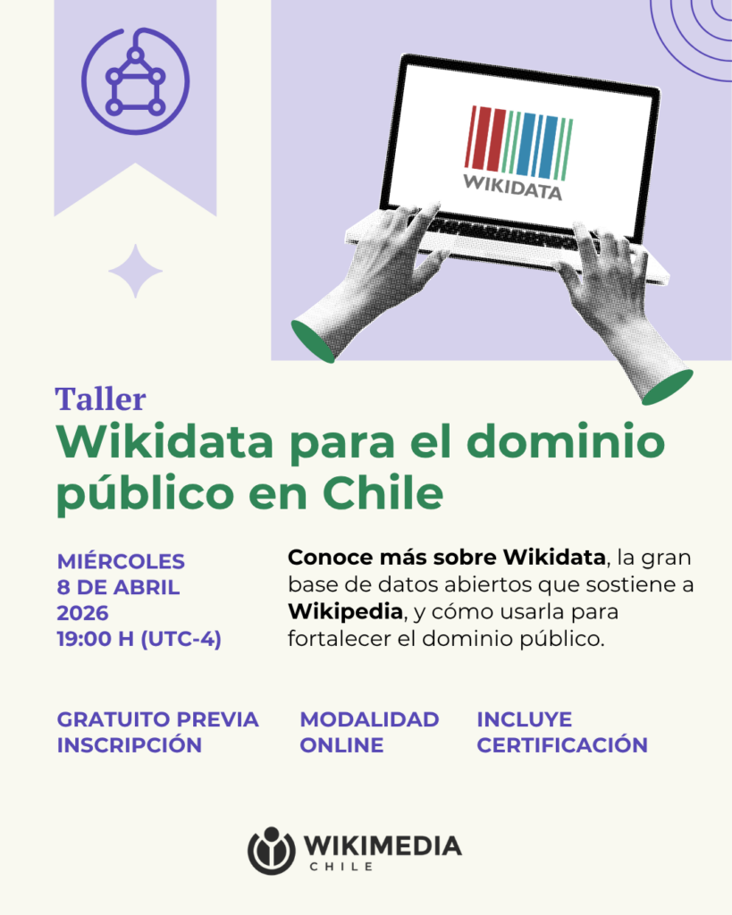 Súmate a esta instancia donde aprenderás a usar Wikidata y a entender cómo esta herramienta clave, que nutre proyectos como Wikipedia, permite visibilizar contenidos en dominio público en Chile y Latinoamérica.
